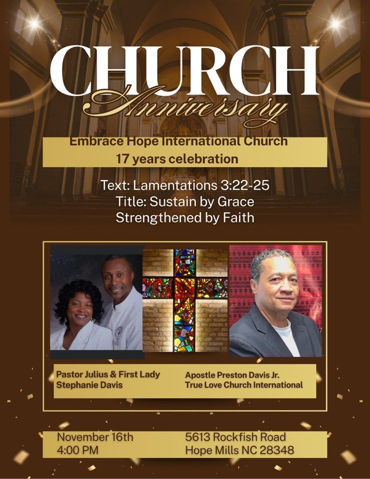 Join us as we celebrate 17 years of God’s faithfulness, love, and grace.